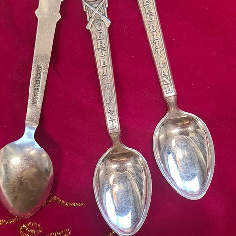 Nilsjohan Norge sølvskjeer, 6 stk, laget av sølv. Skjeene har dekorative detaljer på håndtaket og veier ca. 10 gram hver. Egnet for bruk til servering eller som samlerobjekt.