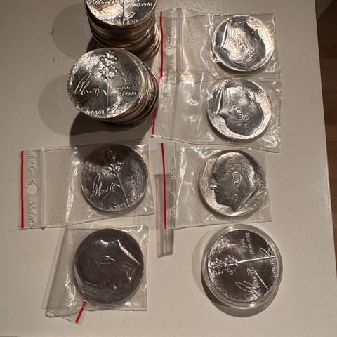 5 medaljer fra myntverket i 925s, 17gram pr stk / 85gram 925s