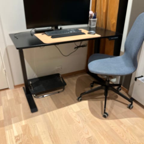 Selger vår skrivebord pga. flytting 😔 Den fungerer helt som den skal, og har ingen skader. Mannen selger det med tungt hjertet. Vi har vært veldig fornøyd med den. Justerbar høyde.