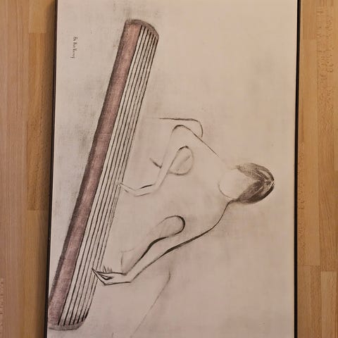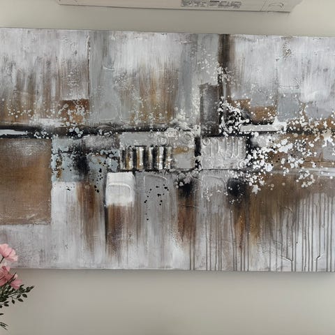Fint maleri i størrelse 100x100 cm. Har ingen videre informasjon om kunstner. Bildet er strekt opp på bilndramme med kryss bak.