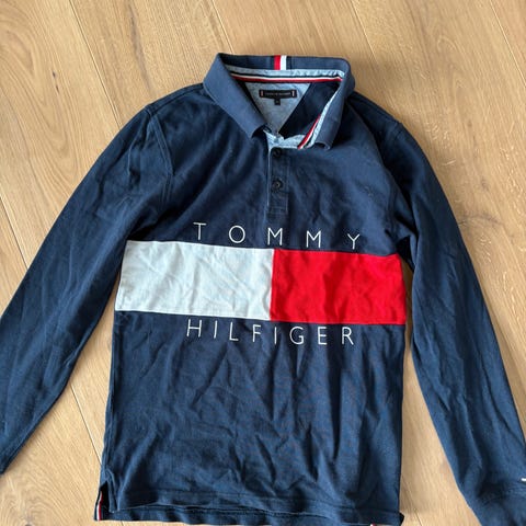 Tommy Hilfiger polotrøye i blå farge, laget av bomull. Passer for gutt i størrelse 164. Langermet design med knappelukking ved halsen og brodert logo på brystet.