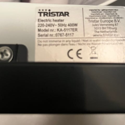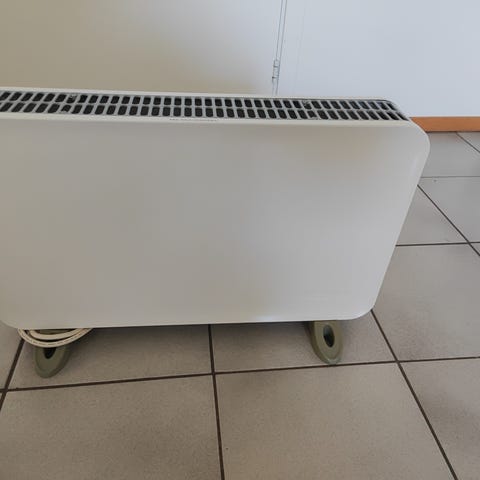 Primo varmeovn i liten størrelse med hvit farge. En kompakt og bærbar elektrisk varmeovn egnet for oppvarming av mindre rom.
