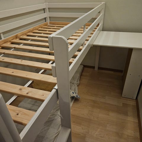 Halvhøy seng med perfekt plass til å leke under. Kun brukt av ett barn.