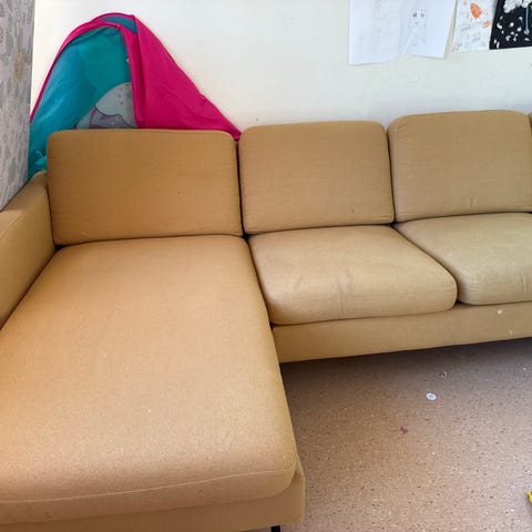 Selges grunnet flytting, bor alene så og har vært veldig lite brukt. Er komfortabel å sitte i og man ka kjøpe nye trekk på IKEA.