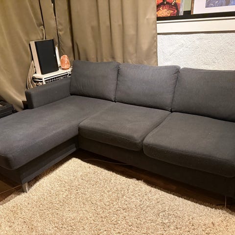 🔹 3-seteren har en knekk i midten, noe som gjør at den er i dårligere stand og bør regnes som reparasjonsobjekt. Den går fint å sitte i, men det merkes når det sitter 3 personer der.