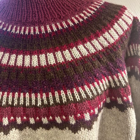 Genseren ble ferdig strikket i november, det er en lett genser på 422 gram og til litt penere bruk. Dvs jeg vil ikke anbefale genseren som ytterplagg på skogstur.