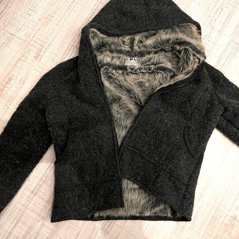 Spesiell, tøff vinterjakke. Mange fine detaljer med lommer og glidelås. Deilig pelskrage på hetten.