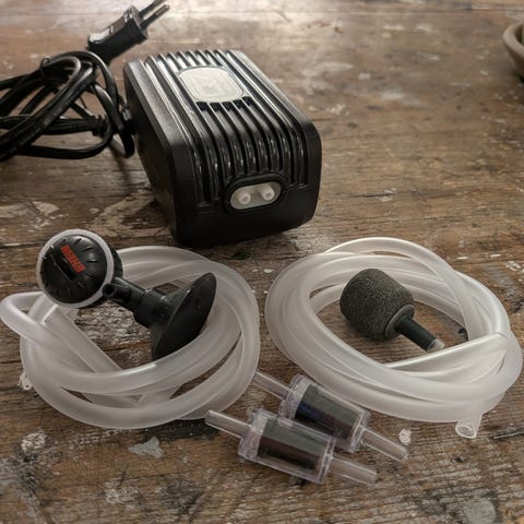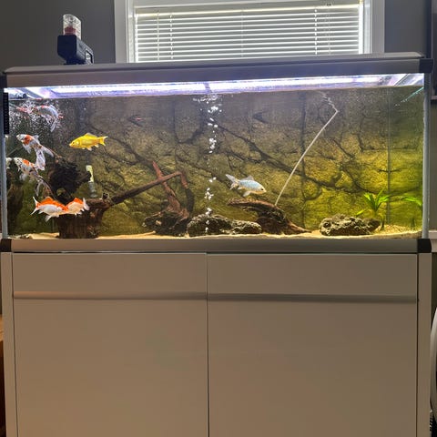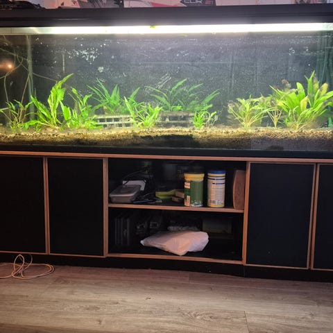 Det bor noen fisk oppi der. Noen kardinal tetra og et par algespisere.