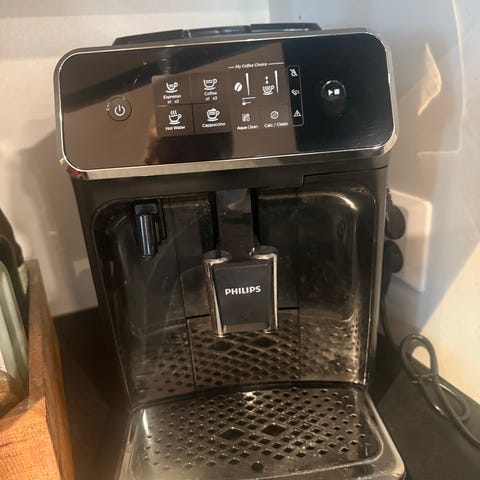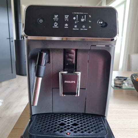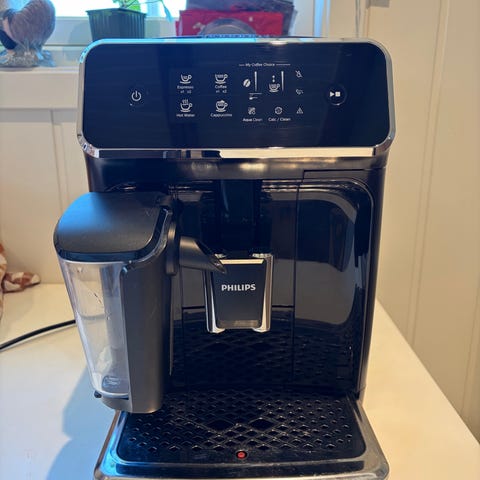 Philips kaffemaskin i svart farge med integrert melkeskummer.