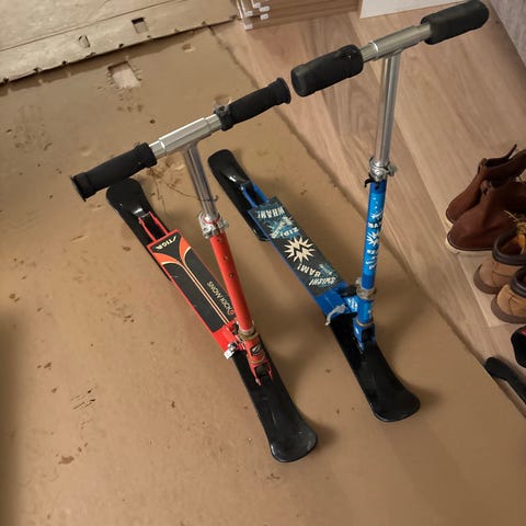 To stk sparke sykkel med ski (snowkick) selges.