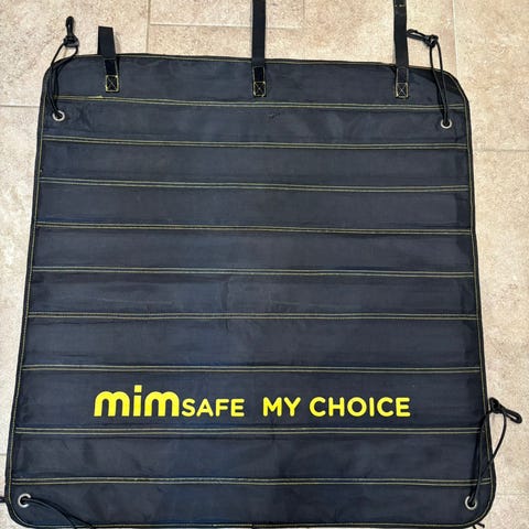 Mim Safe My Choice støtfangerbeskytter til bil i svart farge. Designet for å holde bilens støtfanger skadefri når hund skal hoppe inn og ut av bagasjerommet. Såvidt brukt av oss, så som nytt.Laget av slitesterkt materiale for langvarig bruk.