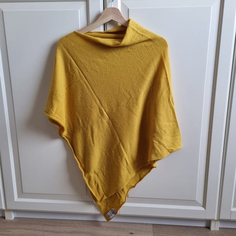 Poncho i 10% cashmere, 33,% merino extra fine, 33% viskose og 24% polyamid.