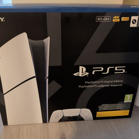 PlayStation PS5 Digital Edition spillkonsoll med 825 GB lagringskapasitet. Konsollen har et slankt design og tilbyr høy ytelse for digitale spill uten diskstasjon. Utstyrt med haptisk feedback og adaptive avtrekkere for forbedret spillopplevelse. Pris kan diskuteres ved hurtig avgjørelse.