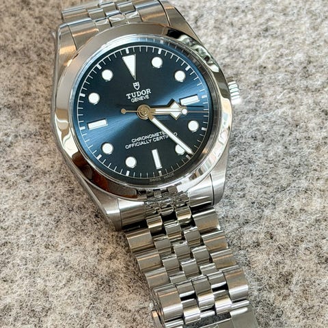 Skap oppmerksomhet med Tudor Black Bay One 39 med blå skive – et raffinert uttrykk for moderne eleganse og kompromissløs kvalitet. Den dype blåfargen gir klokken karakter og dybde, samtidig som den bevarer et rent og balansert design. Med presisjon og pålitelighet i fokus er Black Bay 39 et tydelig bevis på sveitsisk håndverk. Denne klokken er mer enn bare et tilbehør, den er et gjennomtenkt valg for stil og identitet. Enten den bæres til dress eller hverdagsantrekk, vil den blå skiven gi et tidløst preg av selvsikker klasse.