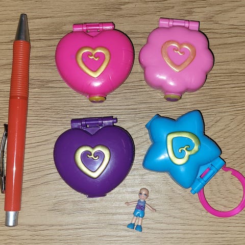Skip hop små bøtter som kan stables og fylles med vann eller sand. De har 3 ulike mønster/hull under.