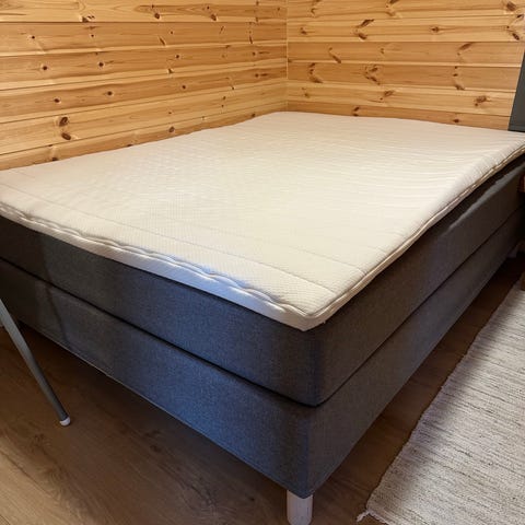 IKEA sengeramme med lameller i tre og metall. Designet for å gi støtte til madrass og forbedre komfort. Passer til standard sengebunner.