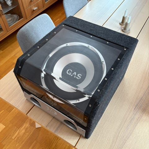 Selger subwooferkasse med 3 stk 12’’ DD Audio subwoofere med GAS Max M1 forsterker.