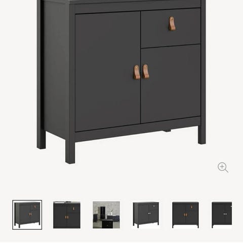 Svart og stilrent. Skaper et NESTEN identisk som på bilde 1&2, men litt andre håndtak. Håndtakene ligner mer på de på bilde nr 3, som et tatt med for eksempel.