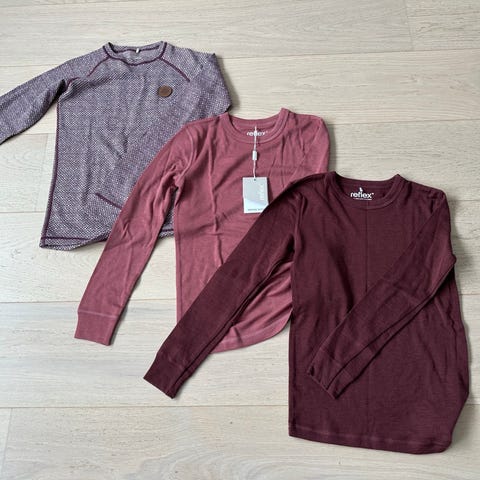 Ribbestrikket genser i ullblanding 60% ull, 40% viskose. Rosa, blå og beige. Bud ønskes da de har noen hull nederst i ermene. Ellers fin stand. Kjøpt nye høsten 2025, vasket med Milo parfymefri ullvask.