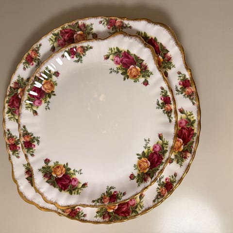 Ovalt serveringsfat med kant fra Royal Albert i mønsteret old country roses