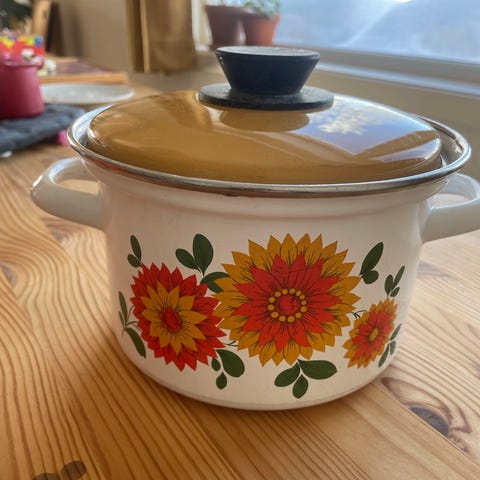Utrolig sjarmerende kjele uten hakk og sår. Bare lette slitemerker noen steder f.eks. i bunnen