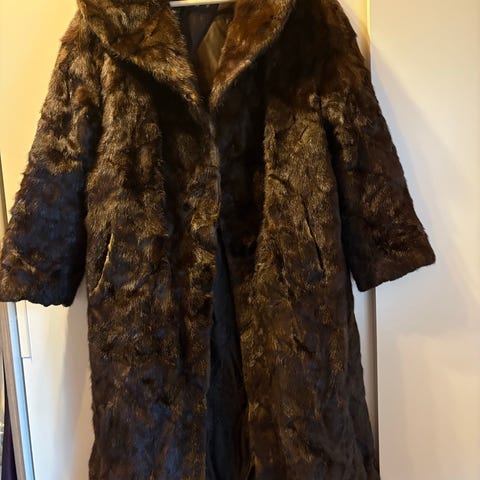 Klassisk vintage selkåpe fra Dagfinn Aulie, kjøpt i Bogstadveien i Oslo i 1979. Arvet etter min mormor og svært pent bevart. Kåpen fremstår som strøken, med myk pels og ingen synlige skader.