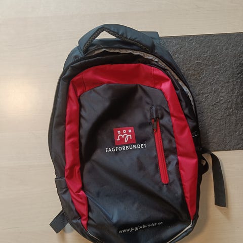 Stoff ryggsekk unisex i svart og rød. Ryggsekken har flere rom og lommer for oppbevaring, justerbare skulderstropper og er laget av slitesterkt stoffmateriale. 70kr