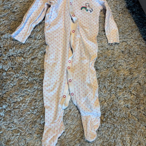 Primark barnepyjamas i størrelse 80, blå farge, laget av bomull. Pyjamasen har knapper foran og er designet for komfort og bevegelsesfrihet. Merk: Det er en synlig flekk på plagget.