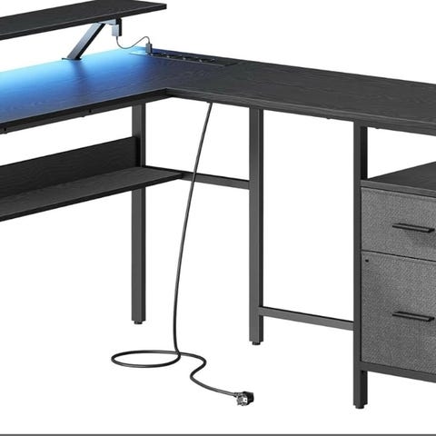 Skrivebord med låsbare skuffer og hylle på baksiden