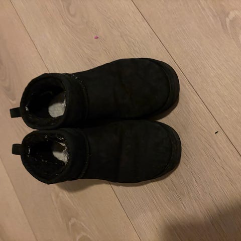 UGG tøfler og tresko i størrelse 43. Tøflene har en innside foret med mykt, lyst materiale for komfort. Yttersålen har mønster for grep. Fargen på utsiden er lys brun.