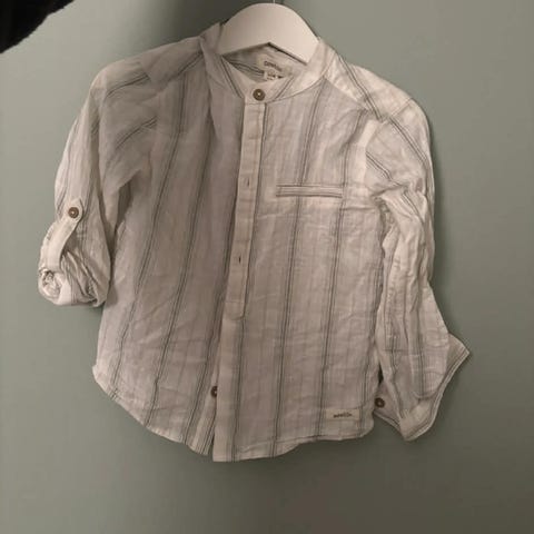 Brukt et par ganger. Buksen er str 104, skjorte 110 (fra cubus). Brukt samtidig