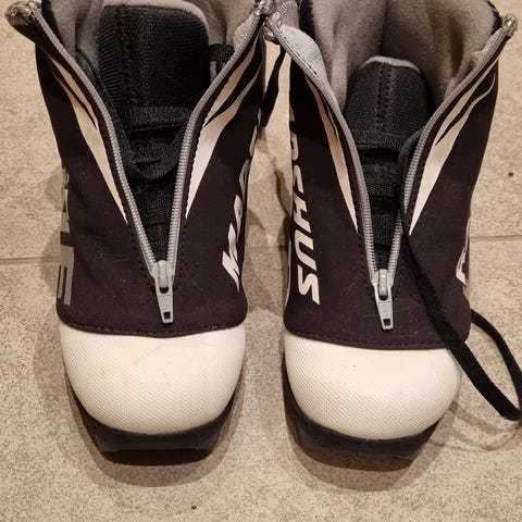Madshus langrennsko i svart og rød farge. Skoene har en robust såle med godt grep, egnet for langrenn. Materialet er slitesterkt og designet for å gi støtte og komfort under bruk. Det mangler en lisse. Nesten ubrukt.... størrelse er 30. Kan leveres I Asker sentrum eller i Hasle (Oslo)