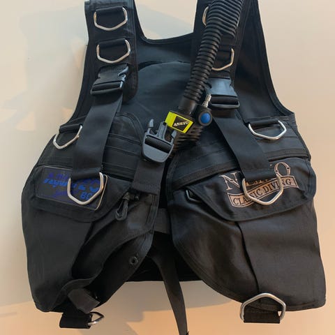 Scandinavian Model BCD vest i svart farge. Designet for dykking med flere lommer og justerbare stropper for tilpasning.