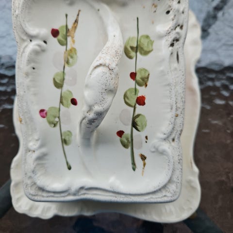 Engelsk-Clotted Cream tea emaljert fat.godt brukt/patinert.usikker på alder/fint er det.Bud