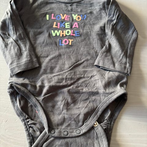 Det Lysegrønn langermet body med tekst på forsiden. Teksten 'how cute am I?’ gir plagget et lekent utseende. Trykknapper nederst for enkel påkledning.