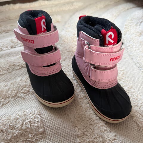 Gode Reima vintersko i rosa og lilla selges. Skoene er synlig brukt, men er fortsatt hele og har mer bruk igjen.