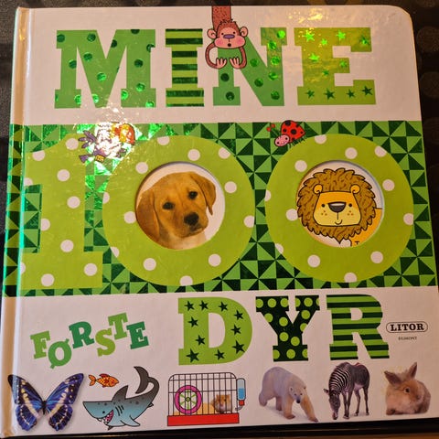Mine første ord Bok med 100 dyr. Barnebok med bilder og navn på forskjellige dyr, designet for små barn for å lære ord og dyr.