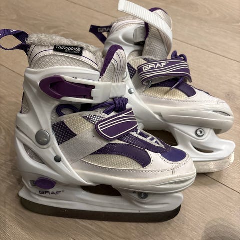 Graf skøyter i størrelse 27-30 for barn. Skøytene har justerbar størrelse.