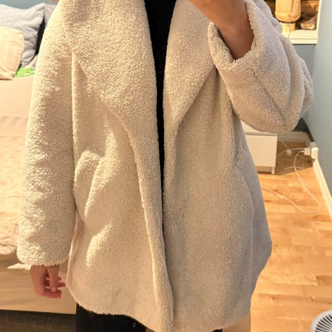 Str. L litt oversize. Dobbelspenn foran og splitt bak.