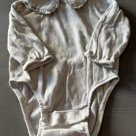 Dette er en lyserosa body til baby med et lite sky-motiv.. Størrelse 68.
