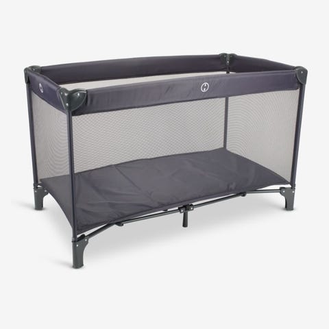 Jollyroom reiseseng i svart farge. Designet for enkel transport og bruk på reise, med medfølgende bæreveske Og madrass