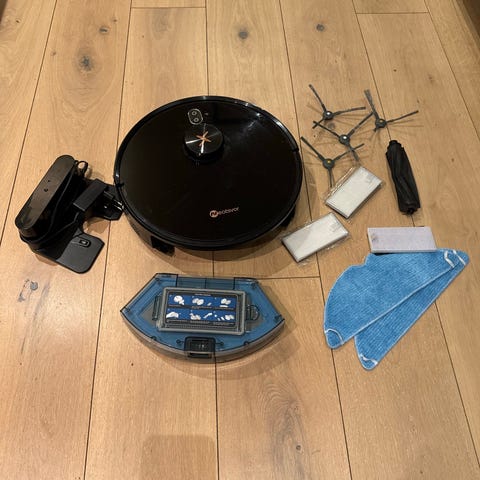 Det følger meg ekstra beholder til mopp funksjonen og andre tilbehør til støvsugeren.