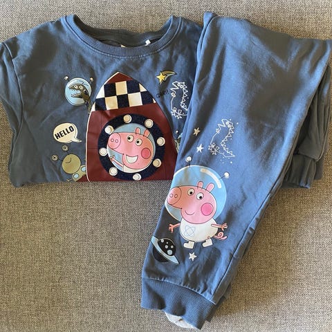 To ubrukte sett str 110. Name ut peppa gris Georg. Ett sett i viskose og ett i collegestoff. Selges pris pr sett evt samlet 600kr