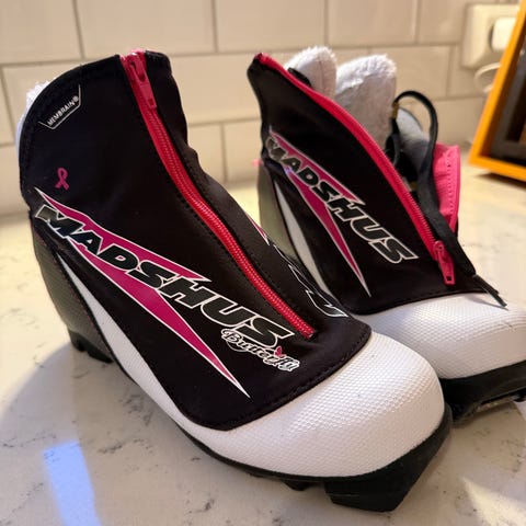 Madshus Holmenkollen skisko i størrelse 36. Skiskoene har svart farge med hvite detaljer og er laget for langrenn. De har snøring og polstret ankelstøtte for bedre passform og komfort.