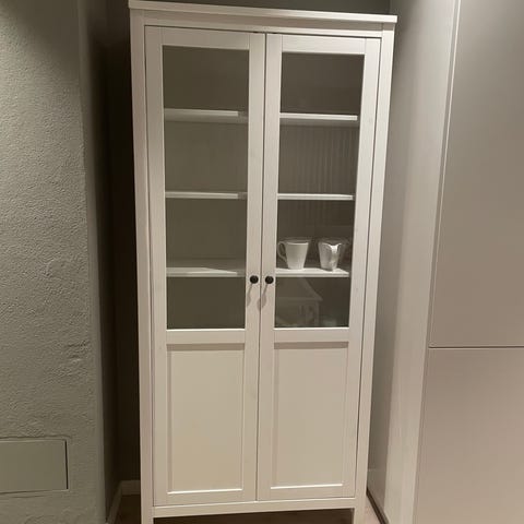 Selger et hjørneskap da det ble for lite for oss. Skapet måler 52cm ut i rommet på begge veggsidene og ca 135cm høyt. Det er en del motthull på baksiden og undersidem. Disse er behandlet.
