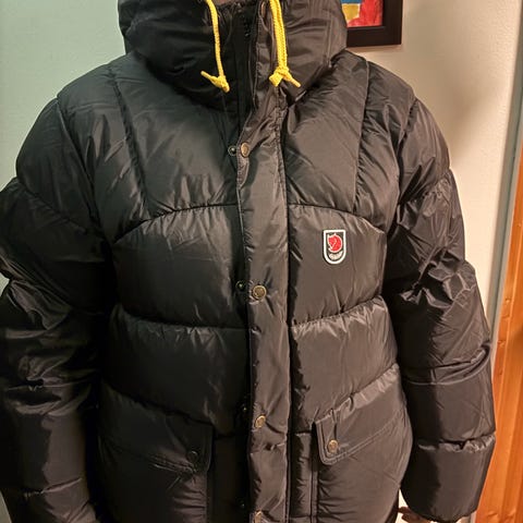 Fjällräven vinterjakke i størrelse M for menn, laget av polyester. Jakken er blå og designet for utendørs bruk i kalde værforhold. Den har et varmt fôr som gir isolasjon og komfort.