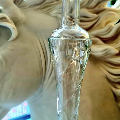 Sjelden og dekorativ samlerflaske i melkeglass (opalin) fra Destilerías El Lorito, Valencia, Spania. Flott motiv av ørn eller papegøye på kvist, i god vintage/antikk stand. Perfekt for samleobjekter, antikviteter eller dekorasjon.