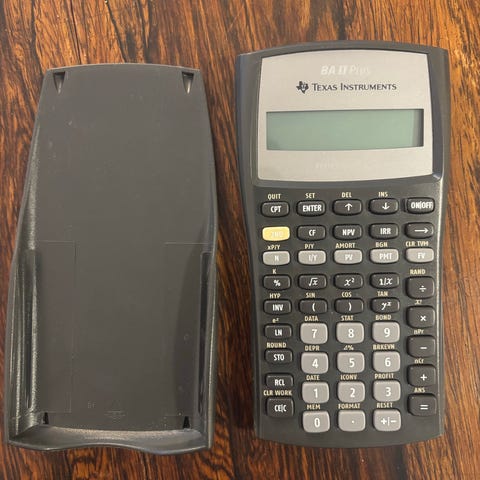 Texas Instruments BA II Plus kalkulator med funksjoner for finansielle beregninger.
