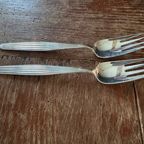 Hun rakk aldri å komme i gang med dette mønsteret, så bestikket har ligget ubrukt i en skuff, beskyttet mot oksidering av plastomslag.