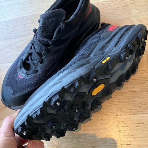 Pent og svært lite brukte Hoka Speedgoat 5 GTX Spike Dame - piggsko i str 37 1/3. Disse piggskoene er perfekte til løping på vinterføre. Skoene er vanntette med Gore-Tex, godt dempet og har meget godt feste.